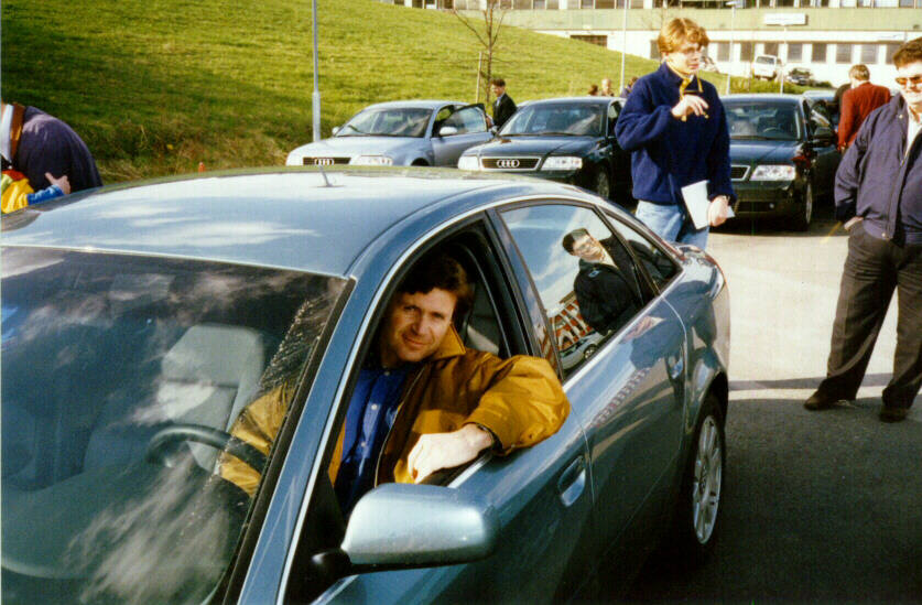 There was a free selection amoung 15 cars in total. I ended up in an Audi A6 2.4 24V with manual gearshift. Not a bad choice really, as I was a bit to late to grab the A6 2.8 Quattro. Maybe 25 minutes of testdraving along Maridalsvannet is a bit short, but the car felt really good. Wheelspin is effectively eliminated because of EDS (electronic diff. brake). Of course, I had to test how the car did without EDS. The result? Not exactly a "burn out", but quite a lot of spin anyway.